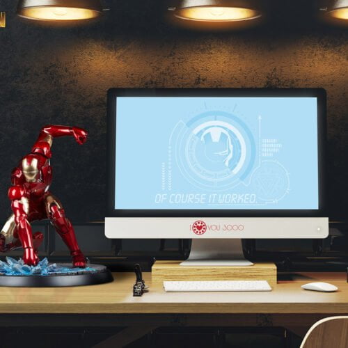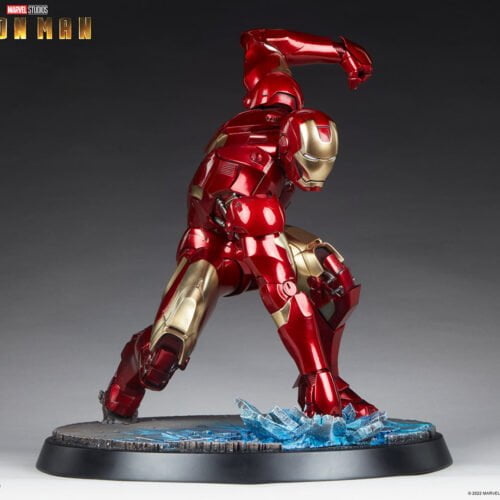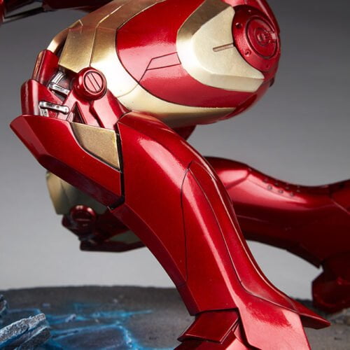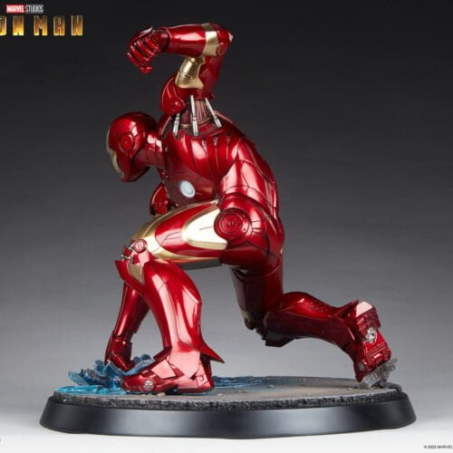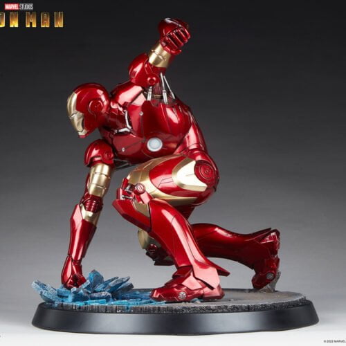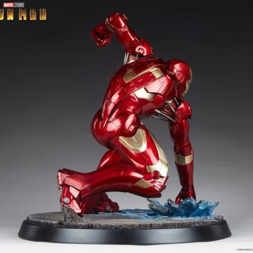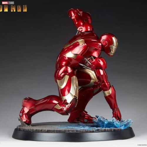 The Iron Man Mark III Maquette measures 16 inches tall and 15.5 inches wide as a suited-up Tony Stark lands in a dynamic fighting stance. His gold and red armor gleams while he prepares his next attack, with one fist pulled back to punch and his other hand breaking the ground beneath him. Blue repulsor energy fills the cracks, reminding Iron Man’s enemies of the awesome power built into the Avenger’s upgraded suit. This faithful recreation of an iconic, intricately designed costume will bring the MCU right from the silver screen to your shelf.