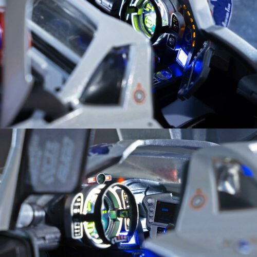 LED functions are located in both the headlights and tail lights, control panel, and boost pod. VA Hi-SPEC ASURADA G.S.X includes a model display base that accurately replicates the racing track from the anime. When the model is placed on the base, different modes of lighting effects can be selected with the available buttons.